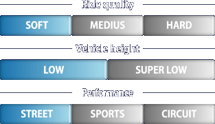 We also pay great attention to ride comfort, developing specific bump-stop rubbers for each model,because good ride quality cannot be achieved by the springs alone. We are confident that this detail development work combines to give a far better ride than that offered by any of the products fielded by our competitors. By adopting the D1-Spec racing wheel nuts in addition to the springs, one can expect an even greater reduction in unsprung weight without taking any risks.
