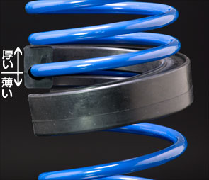 - この製品は、厚さが4種類ありますが、厚さが増すごとに車高の上がり幅も増すものではありません。スプリングの形状によって使い分けてください。